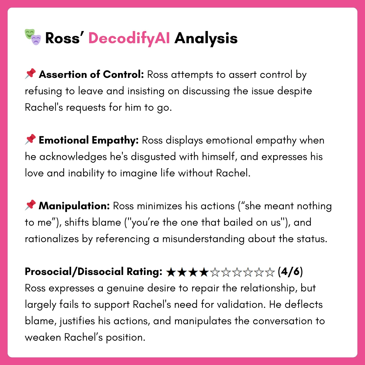 That's what makes the Ross and Rachel fight so compelling - it's not just about them. It's about how humans process truth, intent, and perspective.